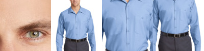 - 65/35 poly/cotton with soil-release finishOpen collar with sewn-in staysMetal collar gripper closureMelamine buttonsTwo button-through pocketsBartacked pencil stall on left pocket