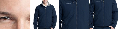Gear up for the office or weekend adventure in this water-resistant, breathable soft shell that features a subtle crosshatch texture. 3000MM fabric waterproof rating. 3000G/M2 fabric breathability rating. Reverse coil zippers, front zippered pockets, adjustable tab cuffs with hook and loop closures and an open hem. Reverse coil zippered chest pocket, contrast Eddie Bauer logo embroidered on left sleeve. Made of a 100% polyester woven shell bonded to a water-resistant laminated film insert and a 100% polyester fleece lining.