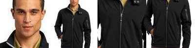 With contrast color detailing throughout, this double-knit jacket is right on trend with moisture-wicking performance and a left sleeve pocket for your phone or MP3 player.